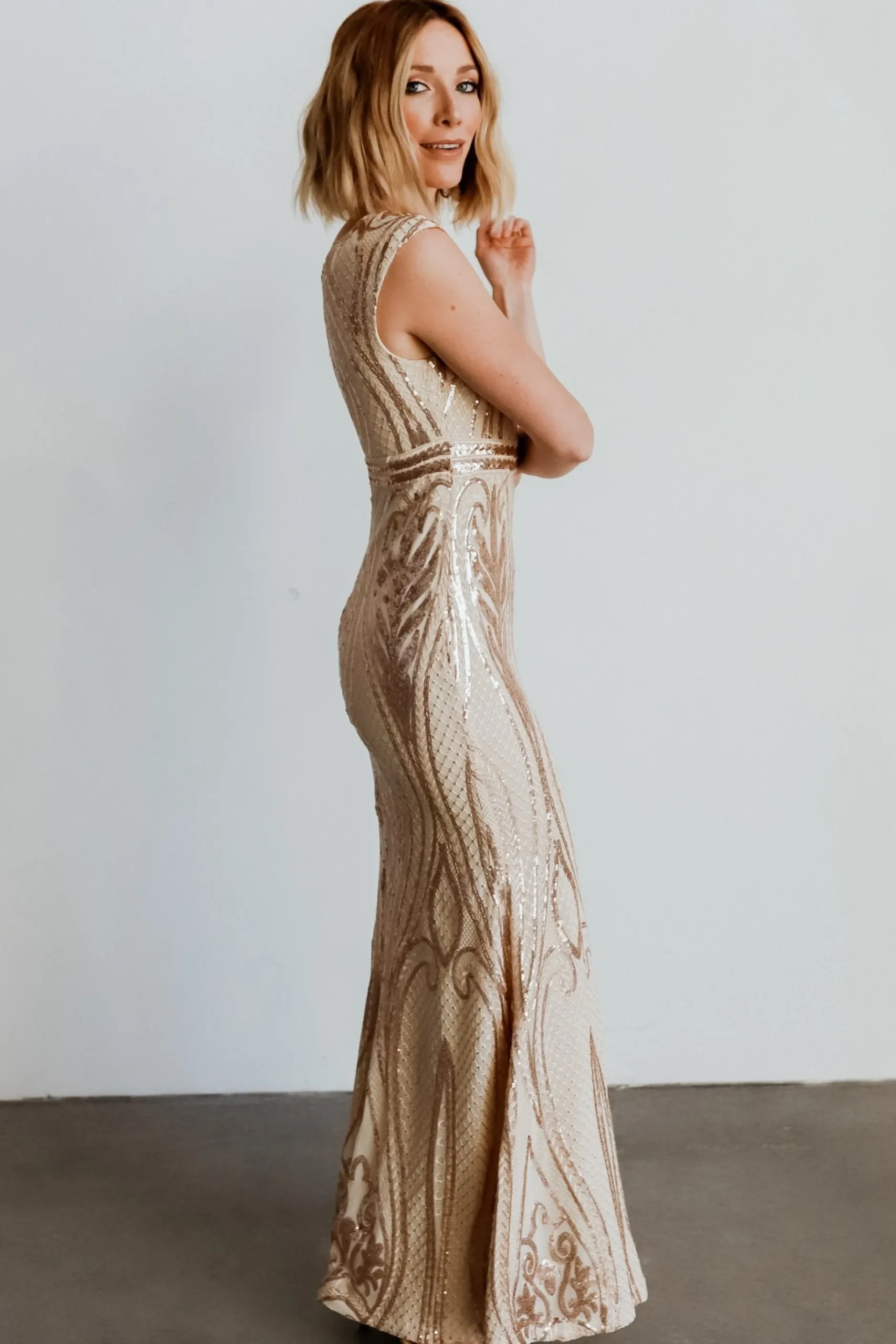 Baltic Born exclusive style!Stunning nude colored lining with rose gold sequins throughout, creating a beautiful champ…