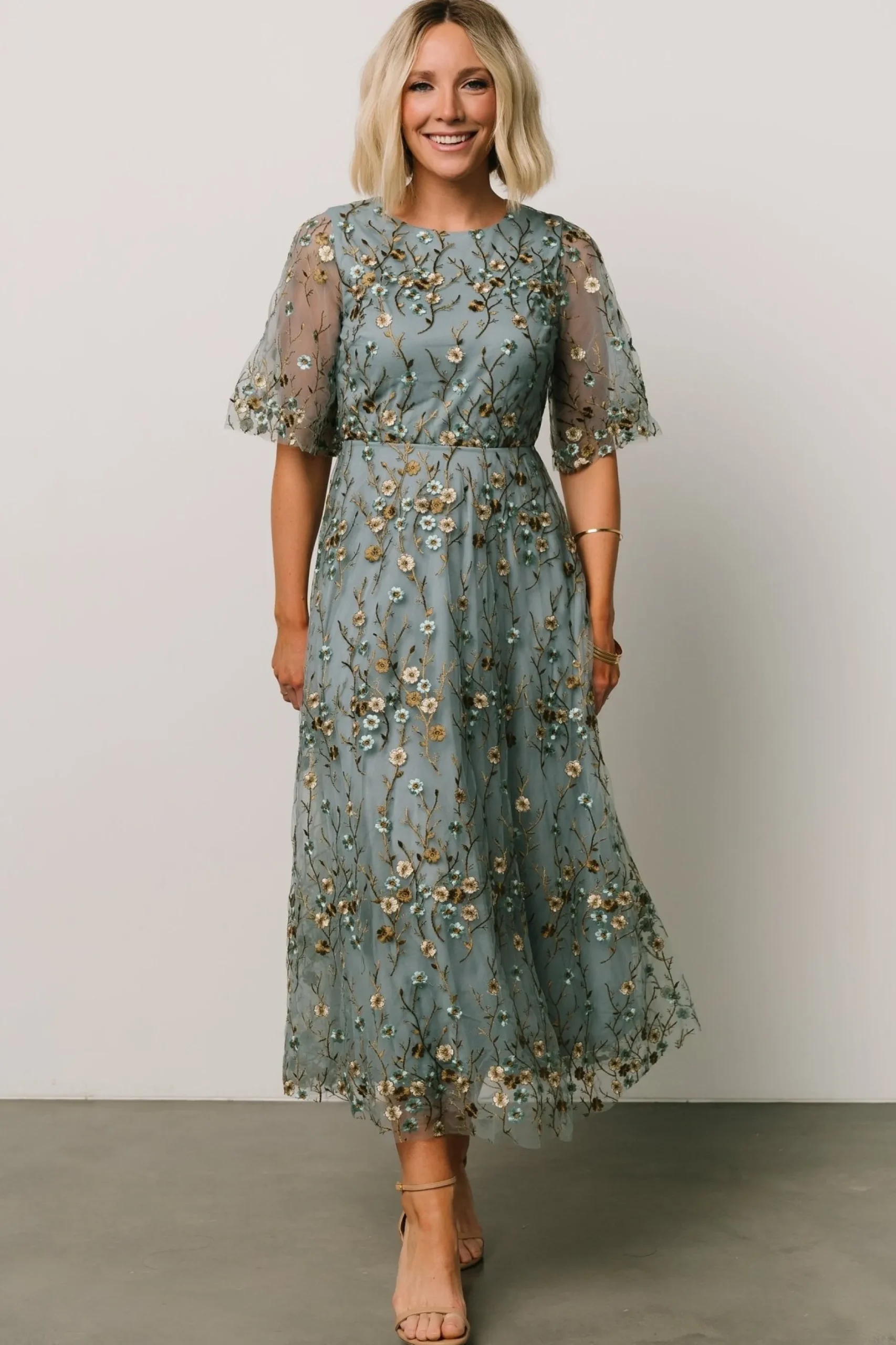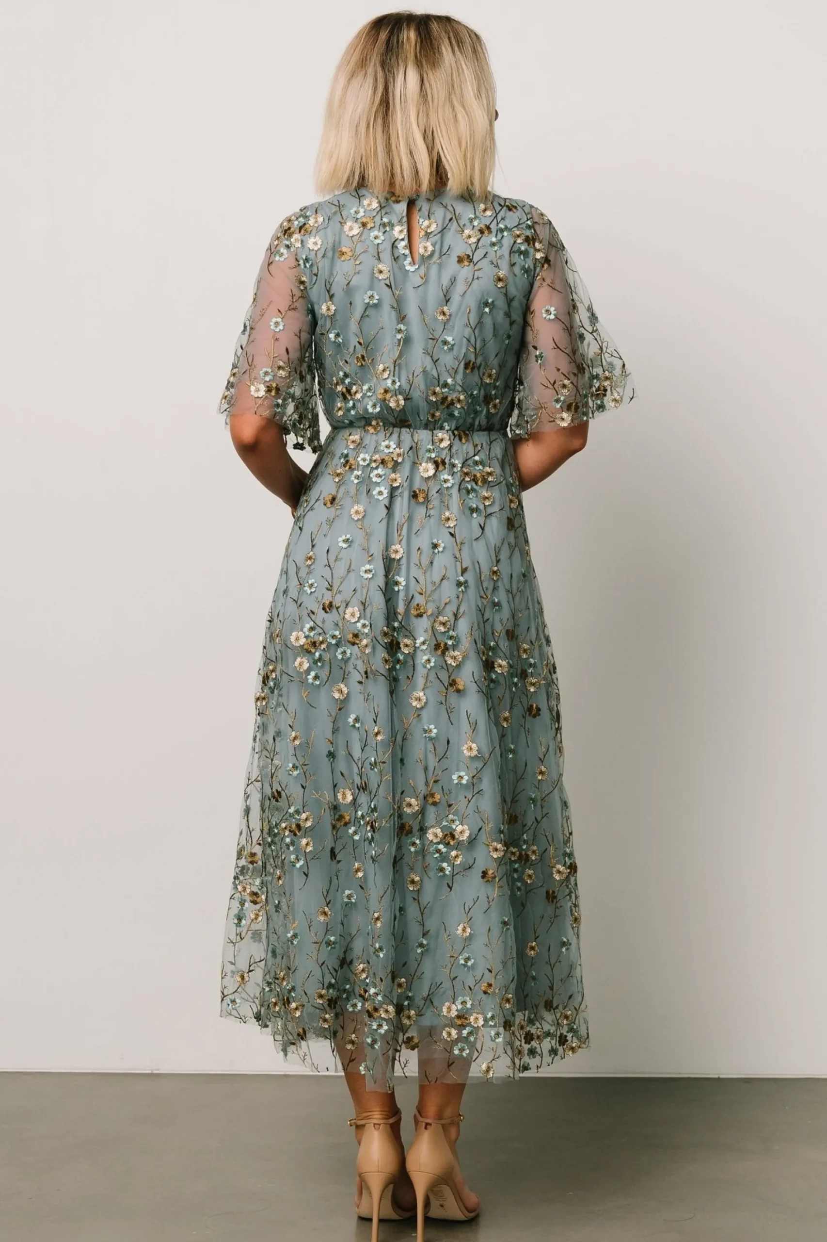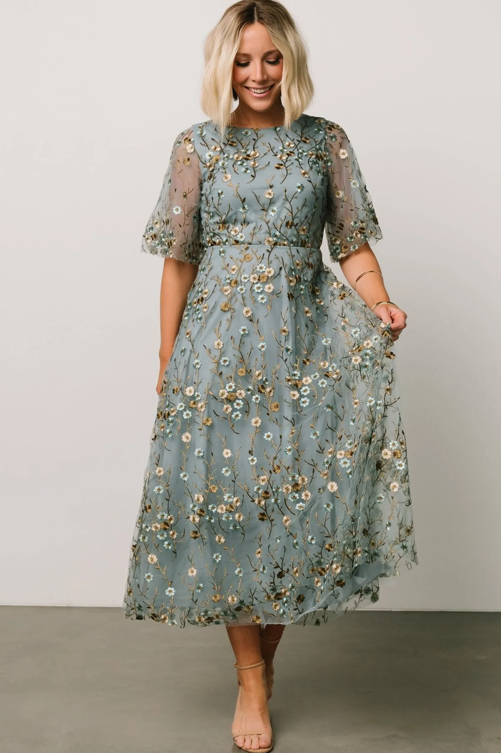 Baltic Born exclusive style!Stunning dusty blue with gold and ivory floralEmbroidered floral throughoutTulle material …