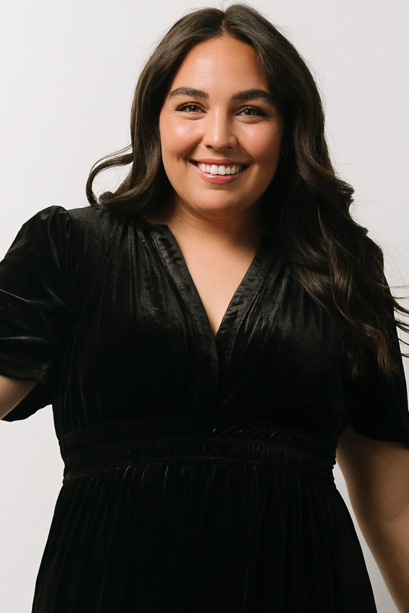 Baltic Born exclusive style!Stunning black colorHigh quality velvet materialPlunging v-necklineShort flutter sleevesE…