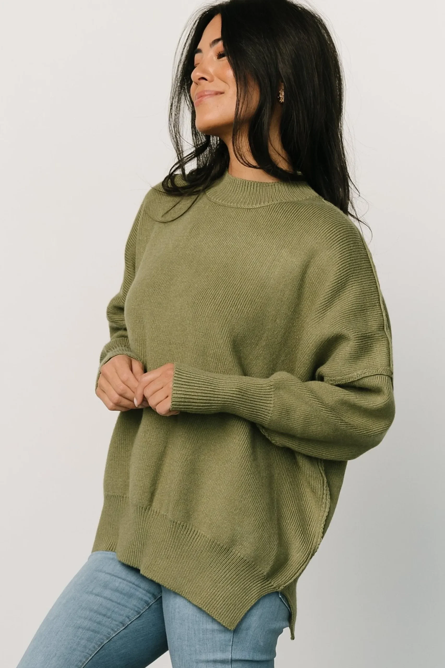Baltic Born exclusive style!Cozy up with this darling pulloverClassic olive hueSoft sweater-knit materialRound neckli…