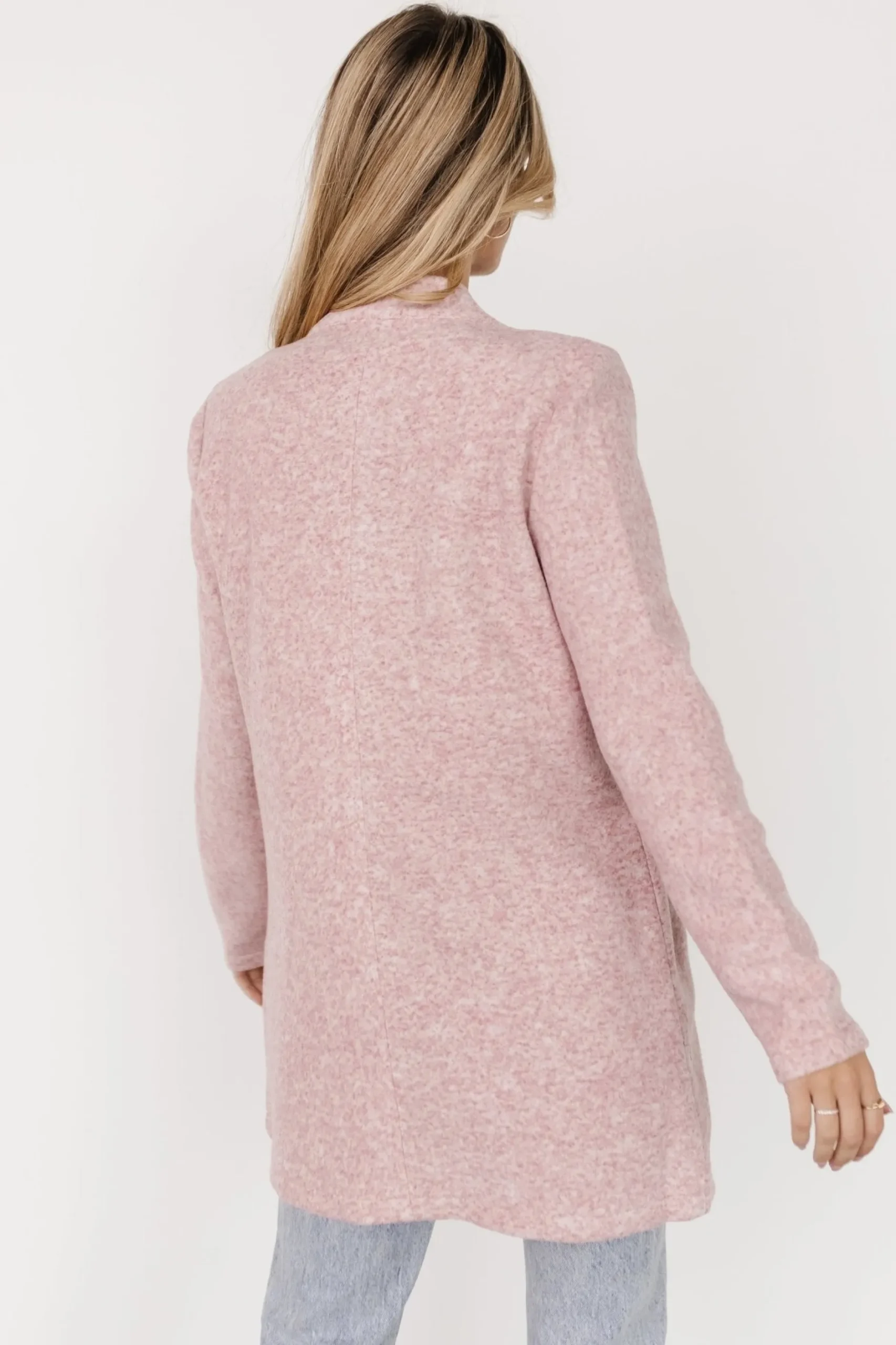 Soft pink and white colored materialSlight stretch throughout fabricNotch collar at necklineLong form fitting sleevesFun…