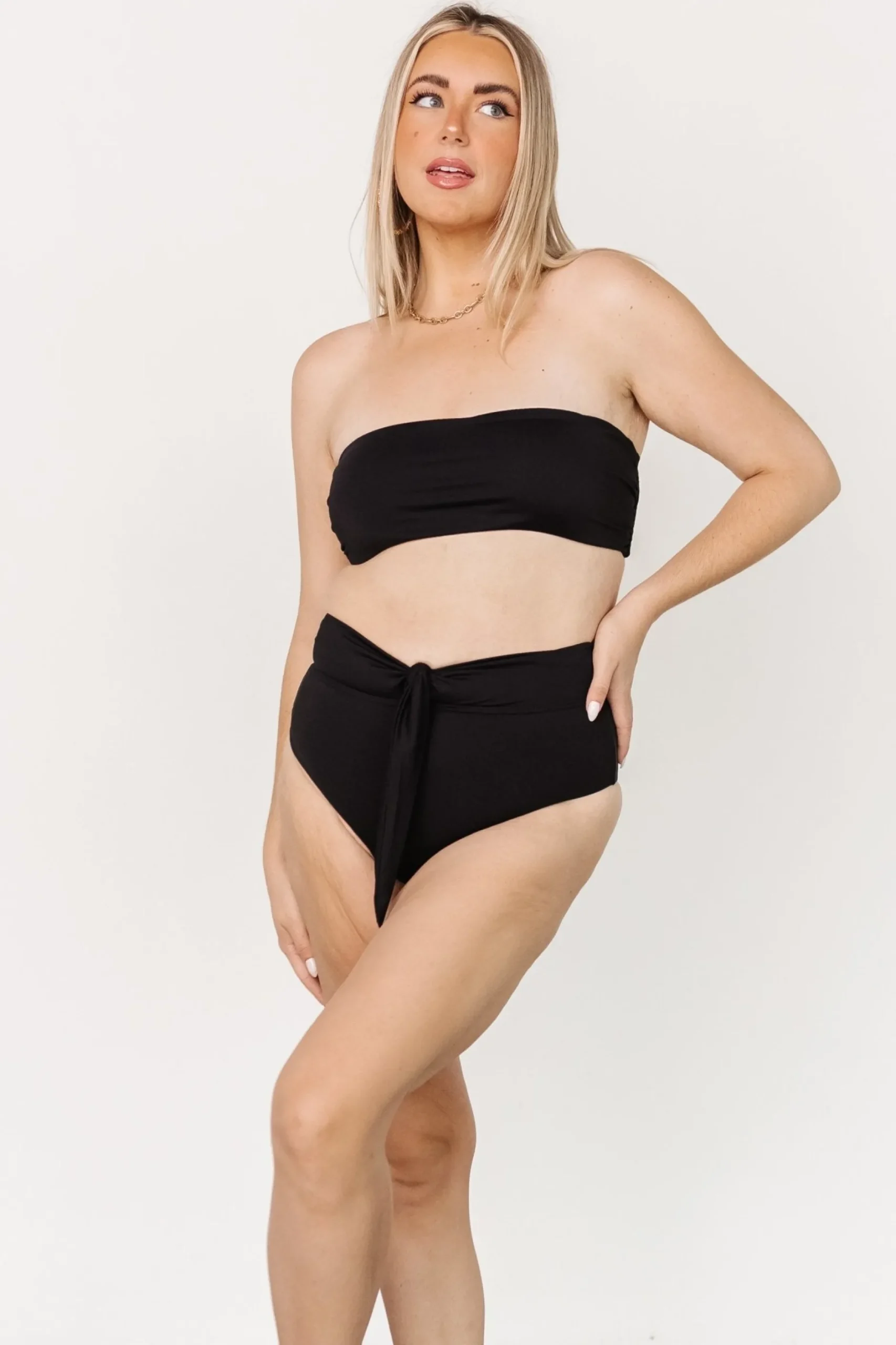 Baltic Born exclusive style!Classic black colorTie back bandeau style bikini topRemovable padded cupsAdjustable to fit…