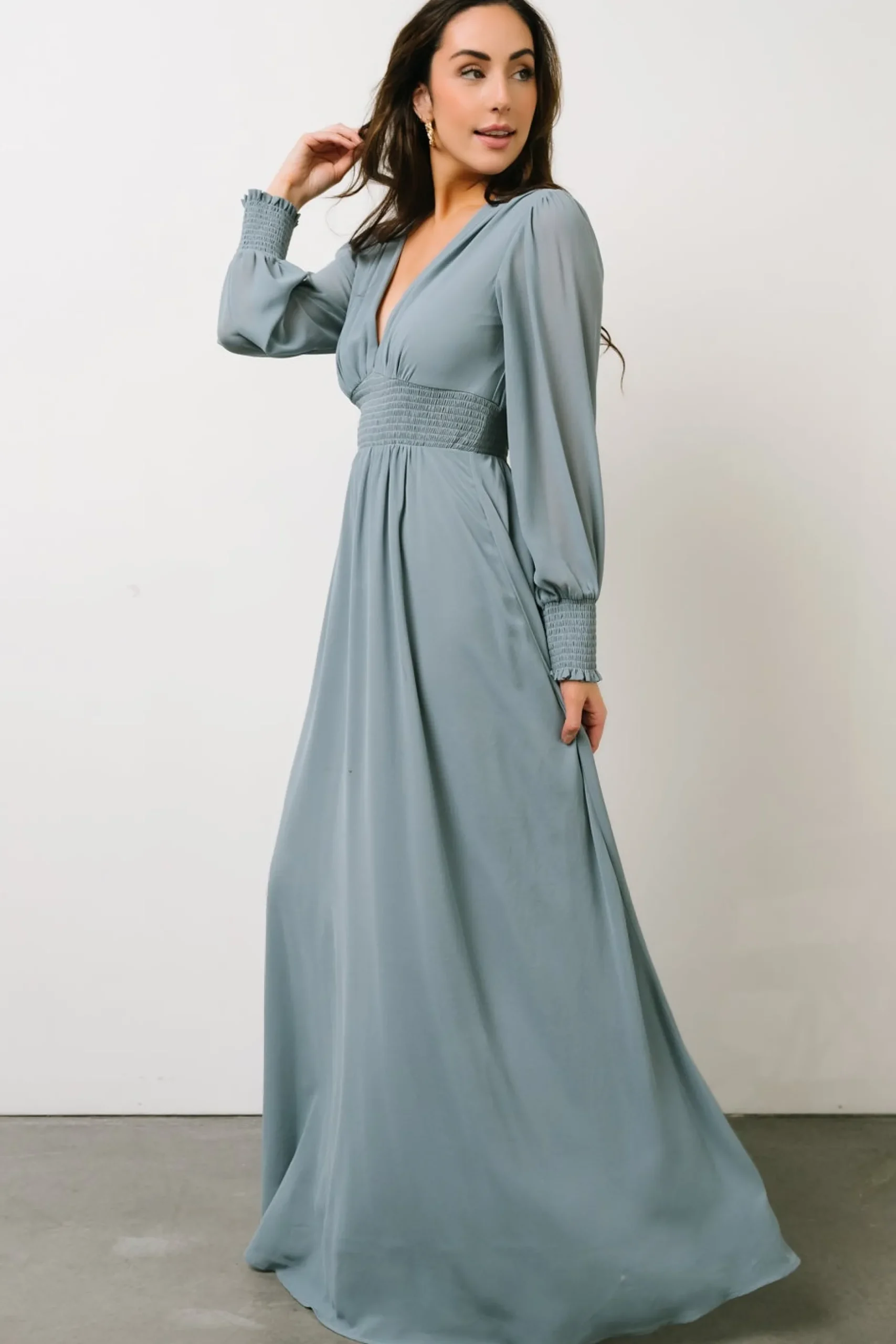Baltic Born exclusive style!Gorgeous dusty blue colorHigh-quality chiffon material that flows beautifullyDeep V-neckli…