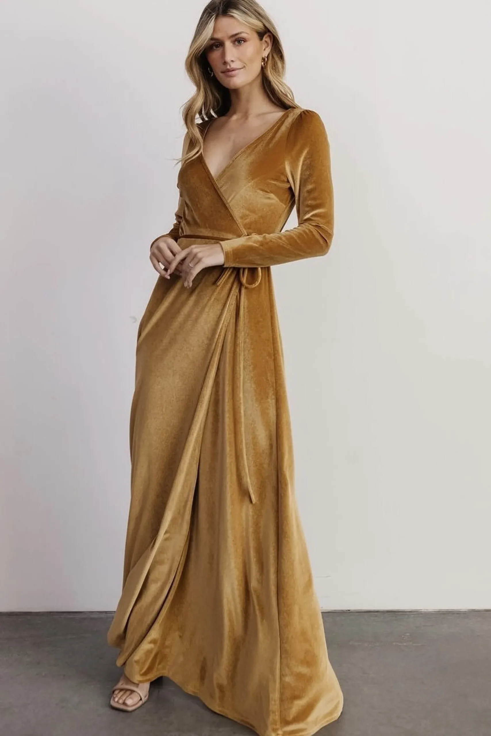 We now offer swatches of our Esmerelda Velvet Wrap Maxi Dress!