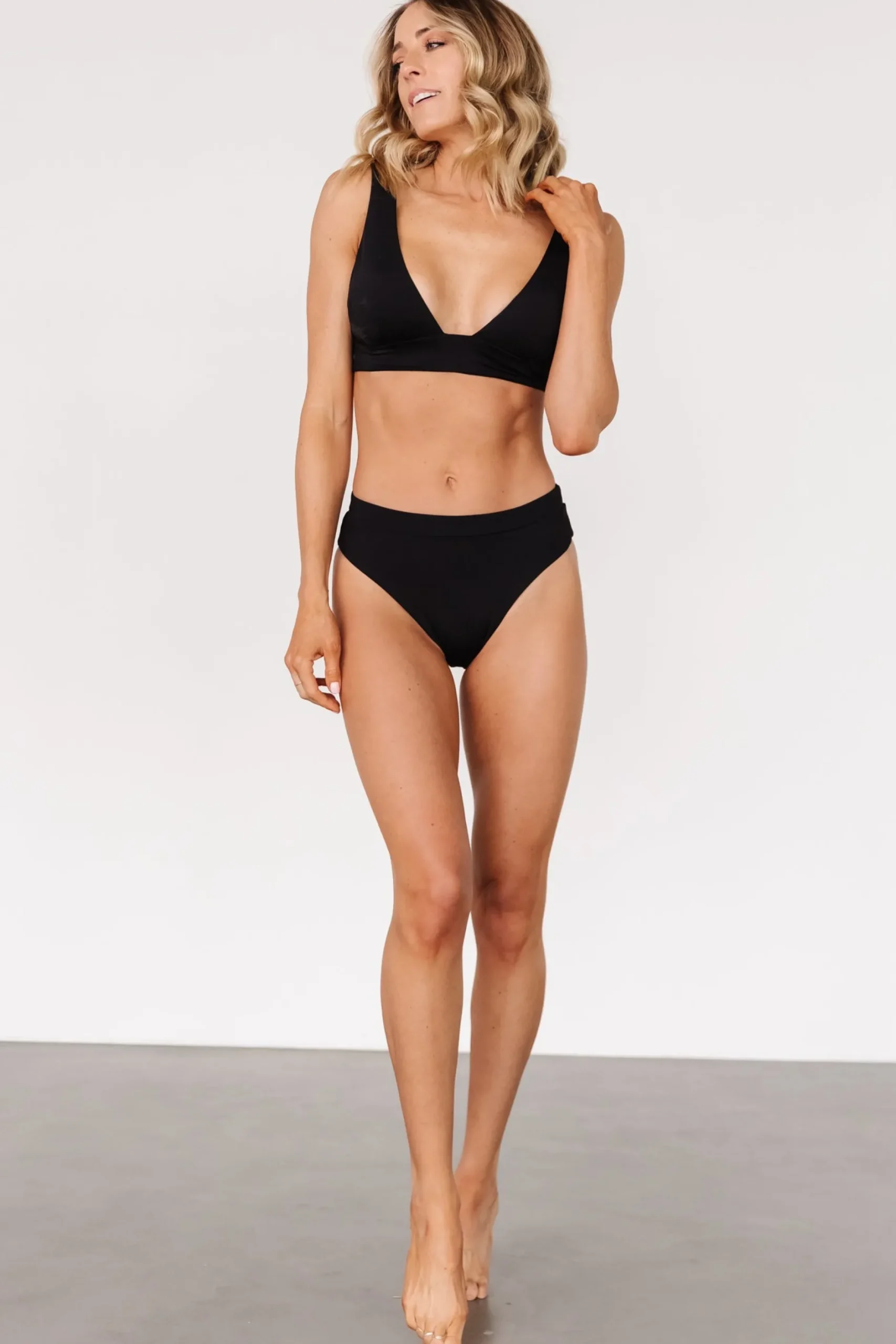 Baltic Born exclusive style!Classic black colorMid/high rise High-cut bikini styleModerate coverage bottoms85% Nylon,…